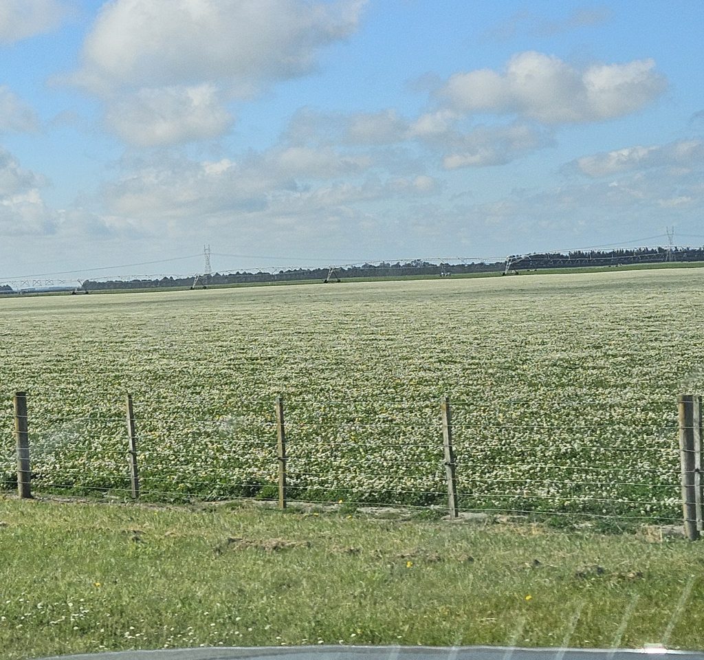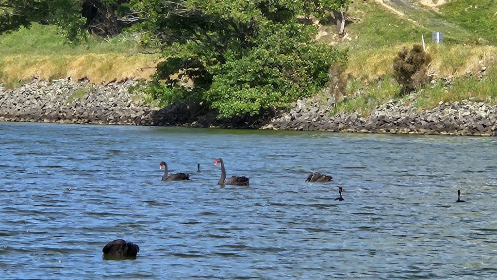 Uns fallen Raps- und Kleefelder auf. Und wieder sehen wir schwarze Schwäne.