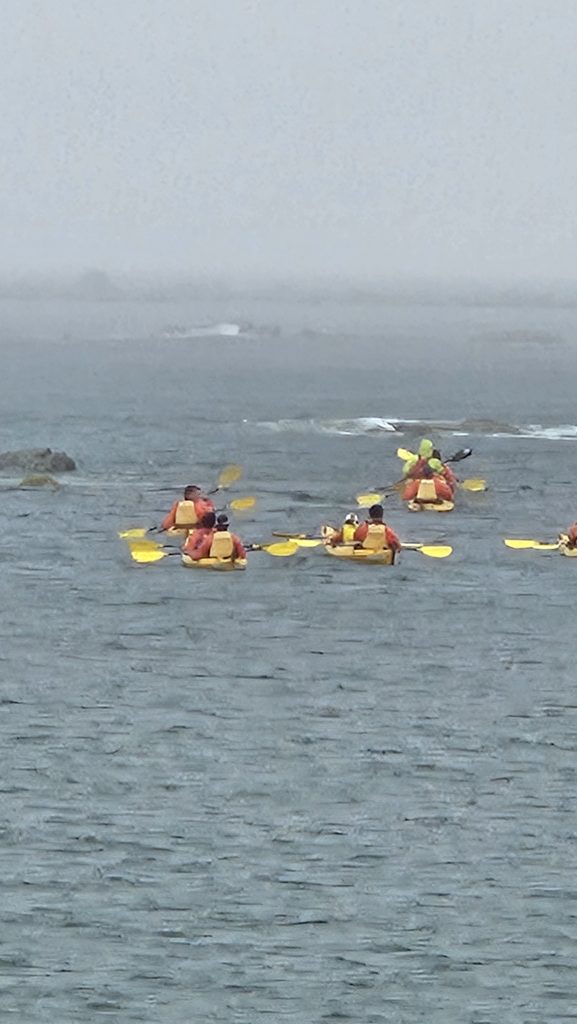 Am nächsten Morgen Regen. Doch was hilft es, Regenkleidung und los geht`s. Die Landwirtschaft braucht im Frühjahr genügend Regen! Am Tag zuvor wollten wir uns zu einer mehrstündigen Kajaktour anmelden. Da bin ich froh, dass wir es nicht getan haben. Wir laufen erst einmal an der Küste herum. Die Paddler müssen los.