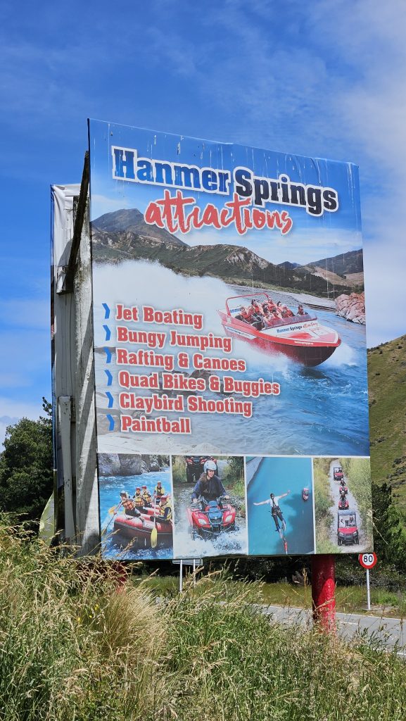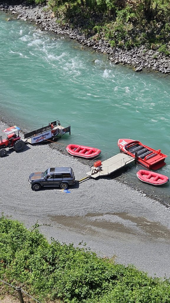 Eigentlich möchten wir Kajak fahren, in die Therme gehen oder vielleicht ein Rafting mitmachen. Das Wetter ist wunderschön. Zu zweit ein Rafting mit unserem Guide Andrew klappt. Danach besuchen wir die Therme. Gleich nach dem Rafting hat ein junges Paar einen Bungee-Sprung gemacht. Die Bilder gibt es, unsere vom Rafting nicht!