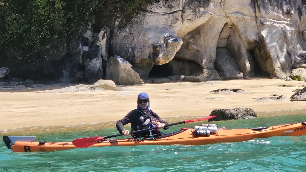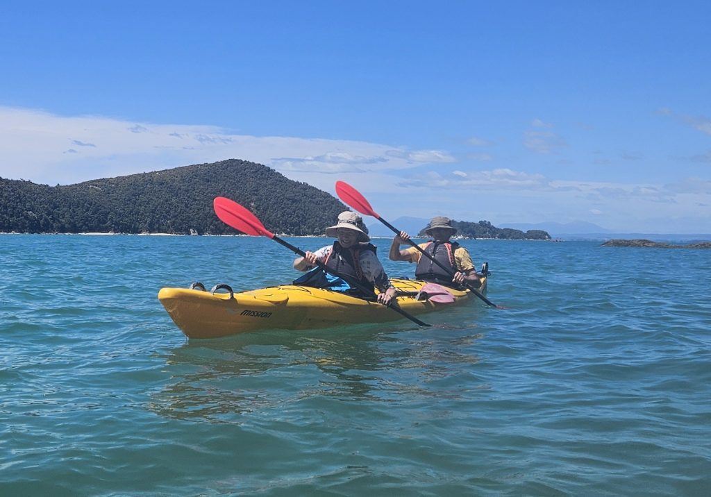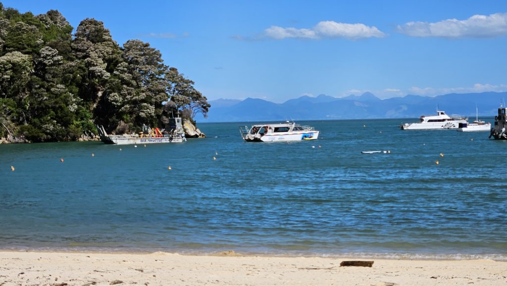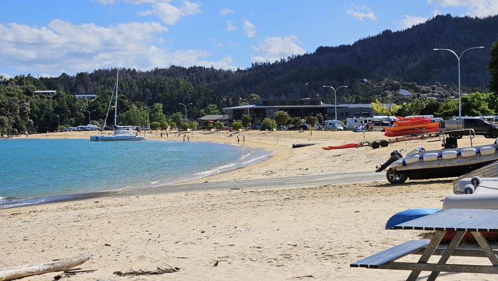 Die nördliche Südinsel Neuseelands, nahe Motueka ist der kleinste, aber einer der schönsten Nationalparks. Berühmt für seine goldenen Strände, Granitklippen und einem weltbekannten Küstenwanderweg. Das Wasser ist sehr klar, es gibt üppige Wälder. Vogelbeobachtungen und Kajaktouren sind möglich. Das werden wir jetzt nachholen. Wir buchen eine Tour für den nächsten Tag.