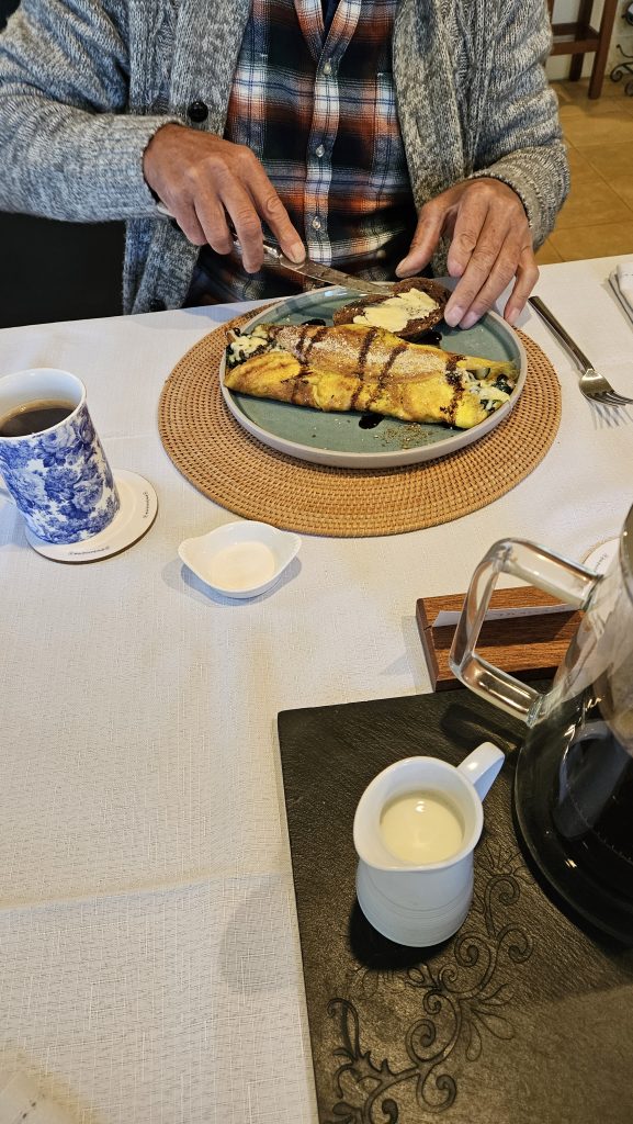 Hier bewohnen wir ein sehr schönes B&B. Unsere Gastgeberin war auch einmal Lehrerin. Bei ihr geht alles streng nach Vorschrift, was super ist. Wir bekommen jeden Morgen ein wunderbares Frühstück. Es ist ein Gebiet mit Thermalquellen.