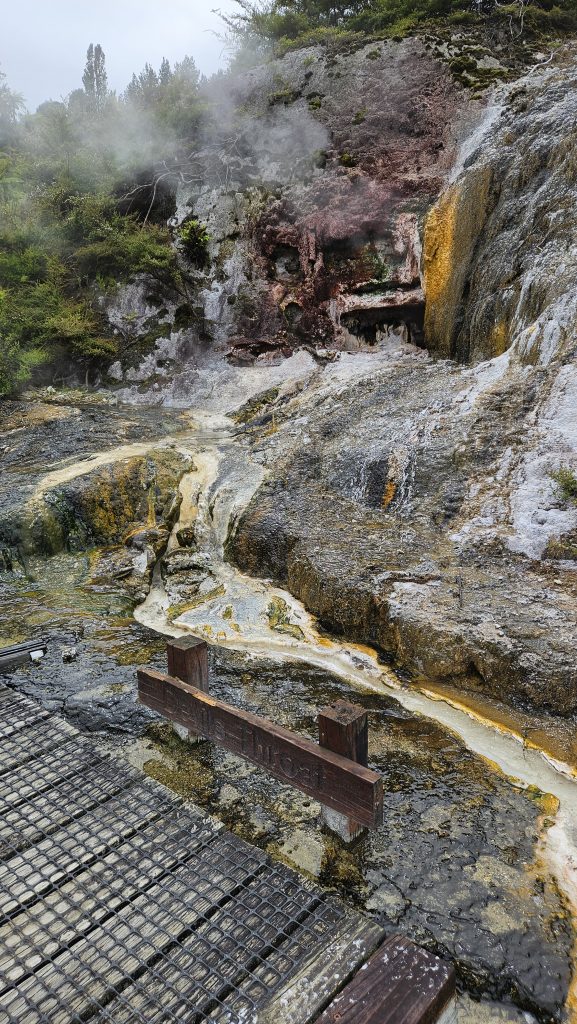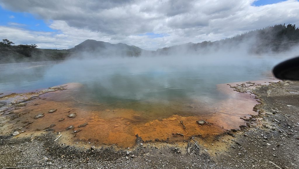 Von unserem Beach Cottage fahren wir zu einer weiteren Stelle mit heißen Quellen und Schwefeldämpfen.