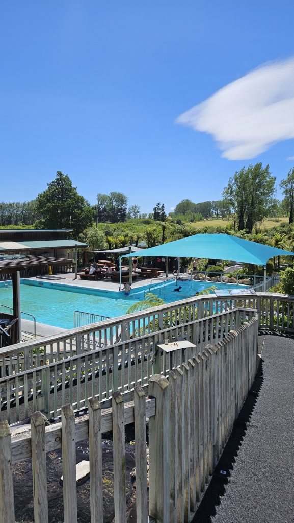 Am nächsten Tag freuen wir uns auf die Hot Pools in Methwen. Am Vortag hatte ich für den höchsten Preis 2 Mal gebucht. Am Eingang werden wir in schnellem neuseeländischen Englisch über das Bad informiert. Wir ziehen uns um und finden die warmen Becken, alle mit der gleichen Temperatur. Auf der linken Seite gibt es eine Sauna, die wir ausprobieren. Man kann die Sulky Fahrer (Trabrennfahrer) in ihren zweirädrigen Wagen beim Training beobachten. Dann entdecken wir die kleinen Pools und probieren sie aus. Unsere Nachbarn haben Getränke an der Seite stehen. Auch vorn am großen Pool genießen die Leute Cocktails und Speisen, ungewöhnlich für uns. Als ich den 2. Saunagang antreten möchte, macht mir eine Mitarbeiterin klar, dass ich hier nicht sein darf. Wir haben angeblich zu wenig bezahlt. Ja hätten wir eine Einführung bekommen wie die anderen Gäste, wäre das wohl nicht passiert!