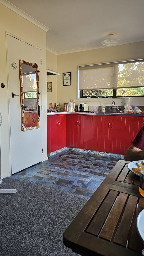Turangi ist eine Kleinstadt im Taupo District in der Region Waikato auf der Nordinsel von Neuseeland. Hier bewohnen wir ein sehr schönes B&B. Unsere Gastgeberin war auch einmal Lehrerin. Bei ihr geht alles streng nach Vorschrift, was super ist. Wir bekommen jeden Morgen ein wunderbares Frühstück. Es ist ein Gebiet mit Thermalquellen.