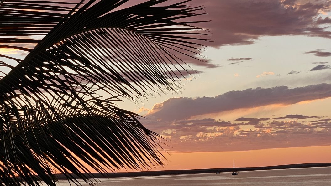 In Monkey Mia angekommen erleben wir so einen Blick von unserem Balkon. Ist das nicht traumhaft? Leider geht die Sonne 18.00 Uhr schon unter.