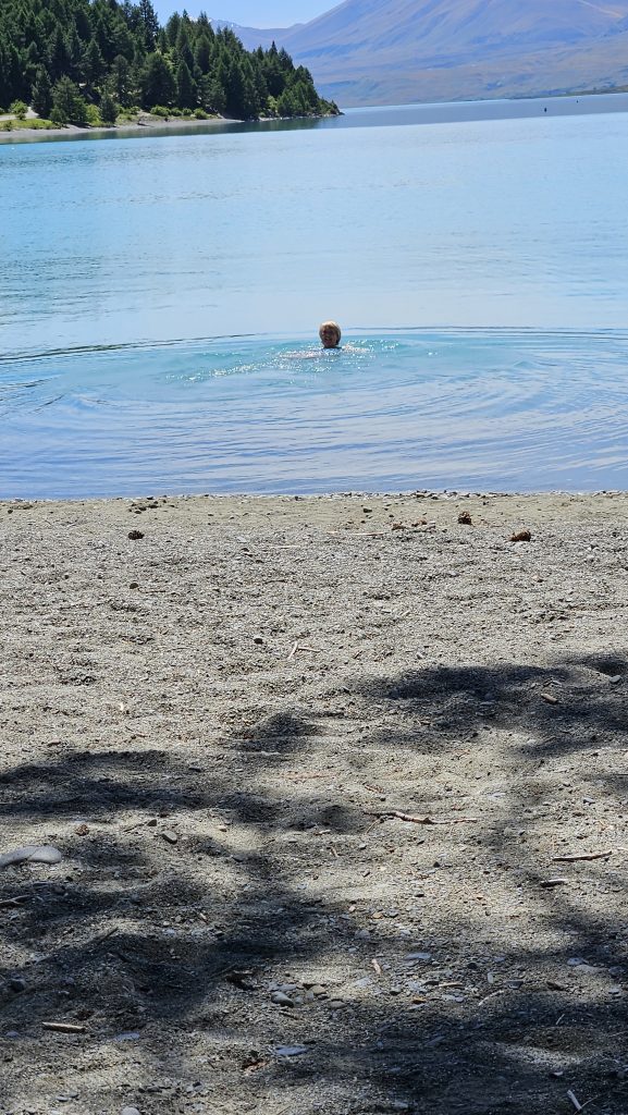 Am nächsten Tag freuen wir uns auf die Hot Pools in Methwen. Am Vortag hatte ich für den höchsten Preis 2 Mal gebucht. Am Eingang werden wir in schnellem neuseeländischen Englisch über das Bad informiert. Wir ziehen uns um und finden die warmen Becken, alle mit der gleichen Temperatur. Auf der linken Seite gibt es eine Sauna, die wir ausprobieren. Man kann die Sulky Fahrer (Trabrennfahrer) in ihren zweirädrigen Wagen beim Training beobachten. Dann entdecken wir die kleinen Pools und probieren sie aus. Unsere Nachbarn haben Getränke an der Seite stehen. Auch vorn am großen Pool genießen die Leute Cocktails und Speisen, ungewöhnlich für uns. Als ich den 2. Saunagang antreten möchte, macht mir eine Mitarbeiterin klar, dass ich hier nicht sein darf. Wir haben angeblich zu wenig bezahlt. Ja hätten wir eine Einführung bekommen wie die anderen Gäste, wäre das wohl nicht passiert!