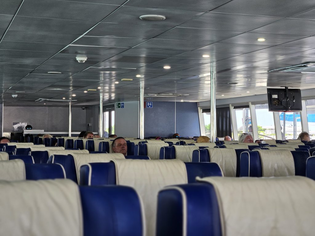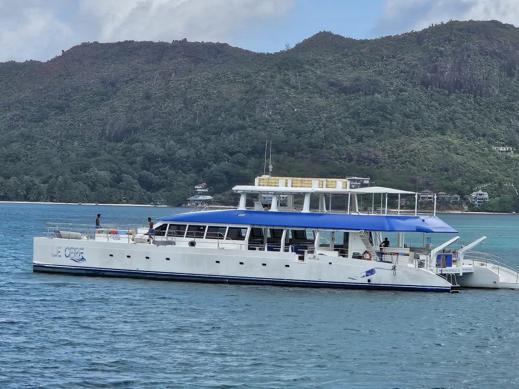 Der Katamaran ist nicht sehr voll. Wunderbares Wetter und ein leichter Wind, so lassen wir Schiffe und Berge an uns vorbeiziehen. Wer kommt mit ins Glas-Boot? Trotz der Enge und der nicht sauberen Fenster ist dieses Gefühl fantastisch ein Teil der Unterwasserwelt zu sein und zwischen Fischen und Korallen zu tauchen.