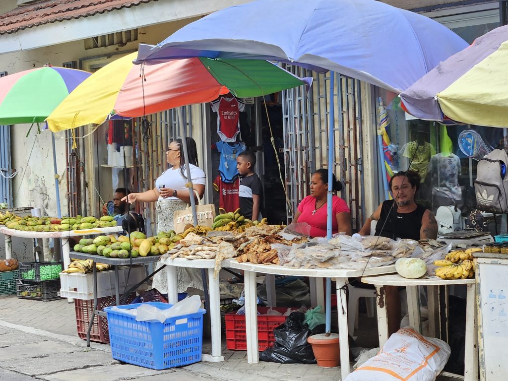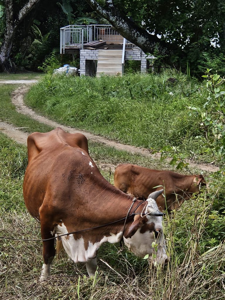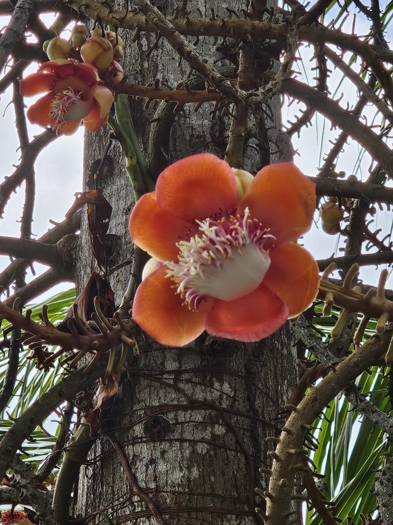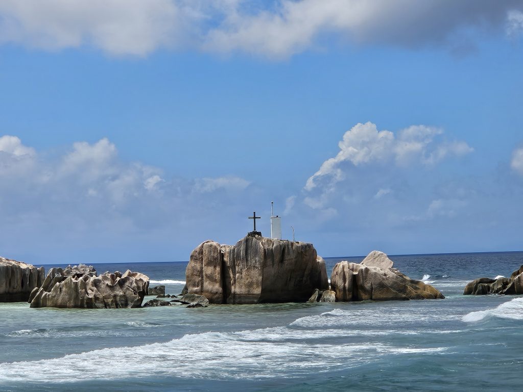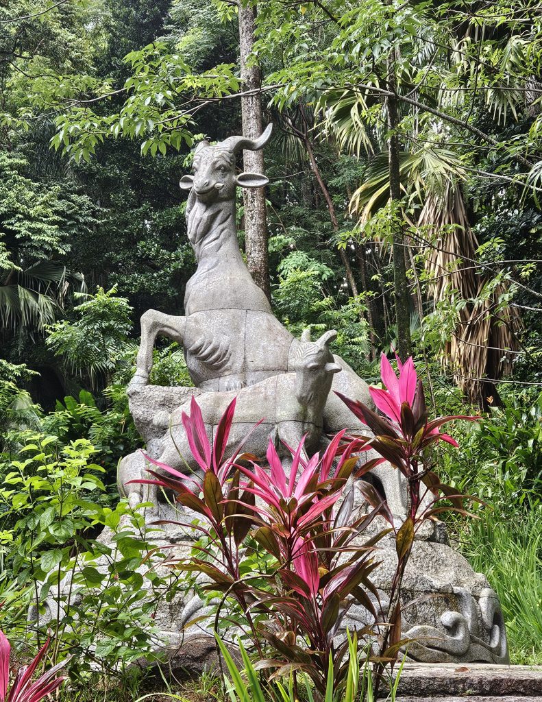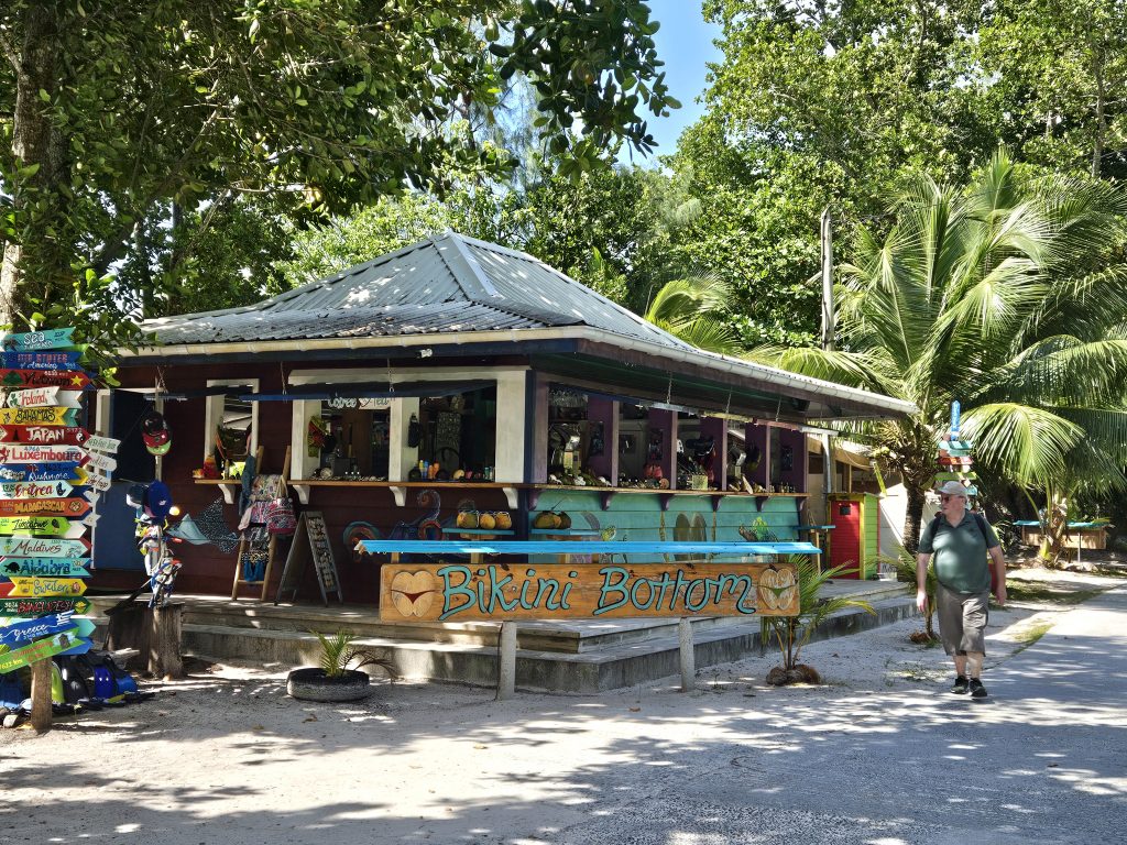 Doch vorher besuchen wir eine Insel. Juli und Melidor wohnten darauf 42 Jahre. Heute wachsen Ölpalmen, Kreolische Früchte und Kaffeepflanzen hier. Auf dem Rundweg sehen wir heimisch gewordene Riesenschildkröten.