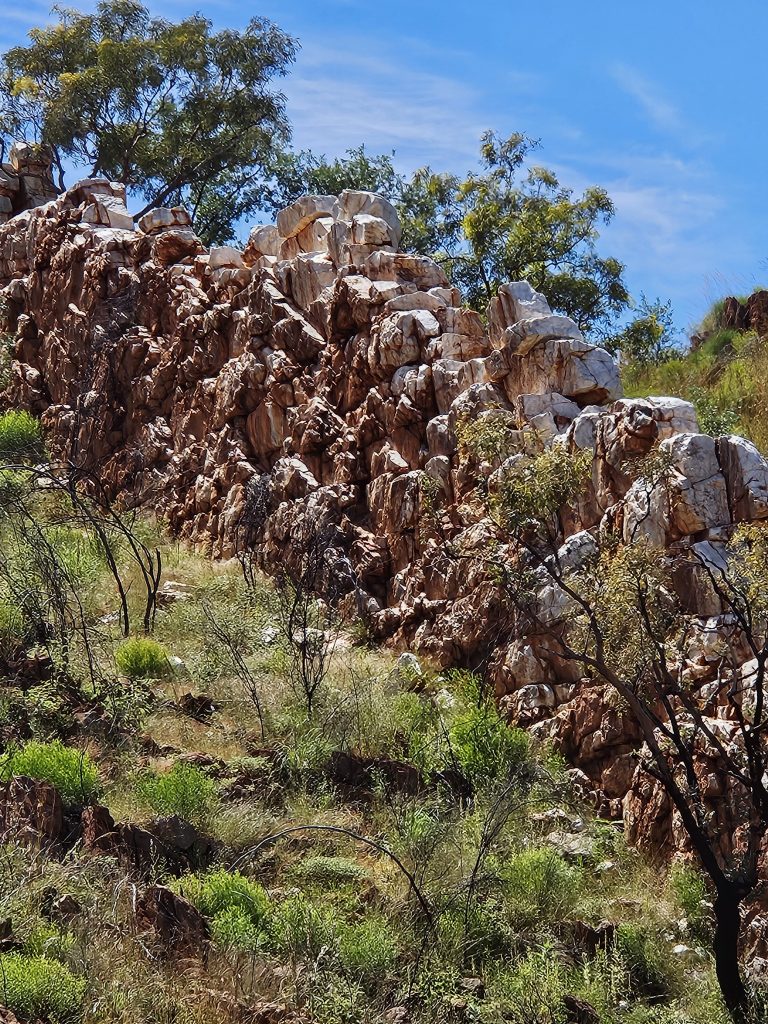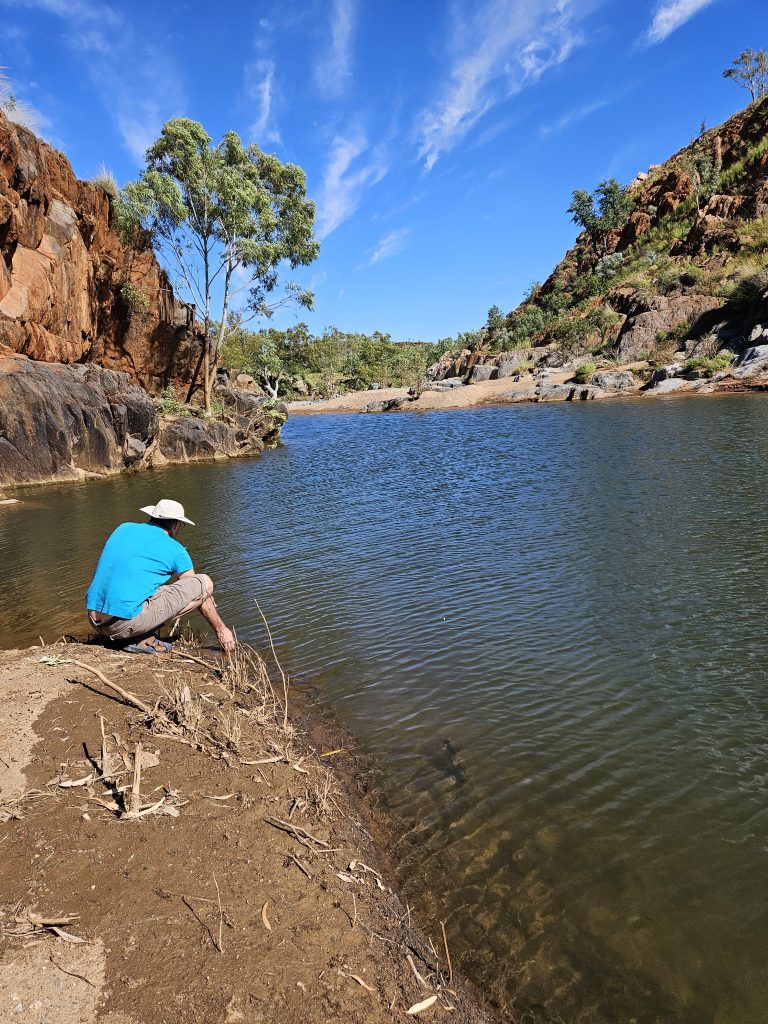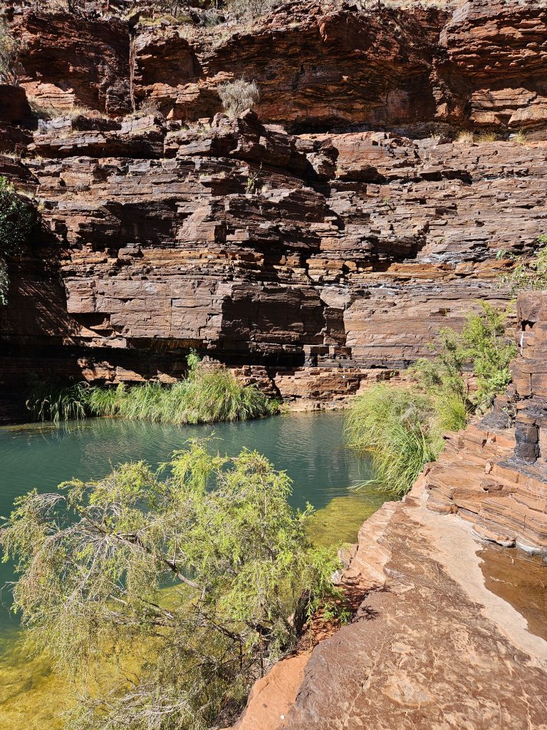 Von Halls Creek geht es weiter in Richtung Fitzroy. Unterwegs finden wir den „Caroline Pool“ und die „Steinmauer“. Kein Mensch oder Krokodil in Sicht, also kann ich herrlich schwimmen.