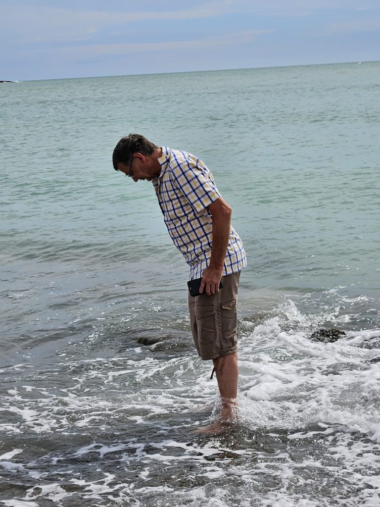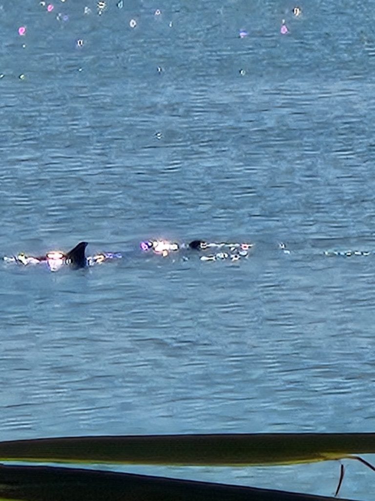 Am Nachmittag sitzen wir mit unserem Kaffee auf dem Balkon. Mein Mann sagt, willst du nicht noch einmal schwimmen gehen. Er schmunzelt und zeigt auf das Wasser. Ich kann es gar nicht fassen. Da ziehen die Delphine in kleinen Gruppen von einer Seite auf die andere. So schnell habe ich meinen Badeanzug noch nie anbekommen und renne an den Strand. Und dann glitzert das Wasser nicht nur, sondern die Delphine schwimmen nach einiger Zeit wirklich direkt an mir vorbei. Meine Hand spürt die harte Haut und ich bin benommen vor Glück.