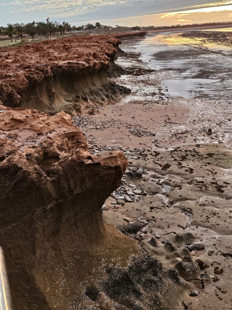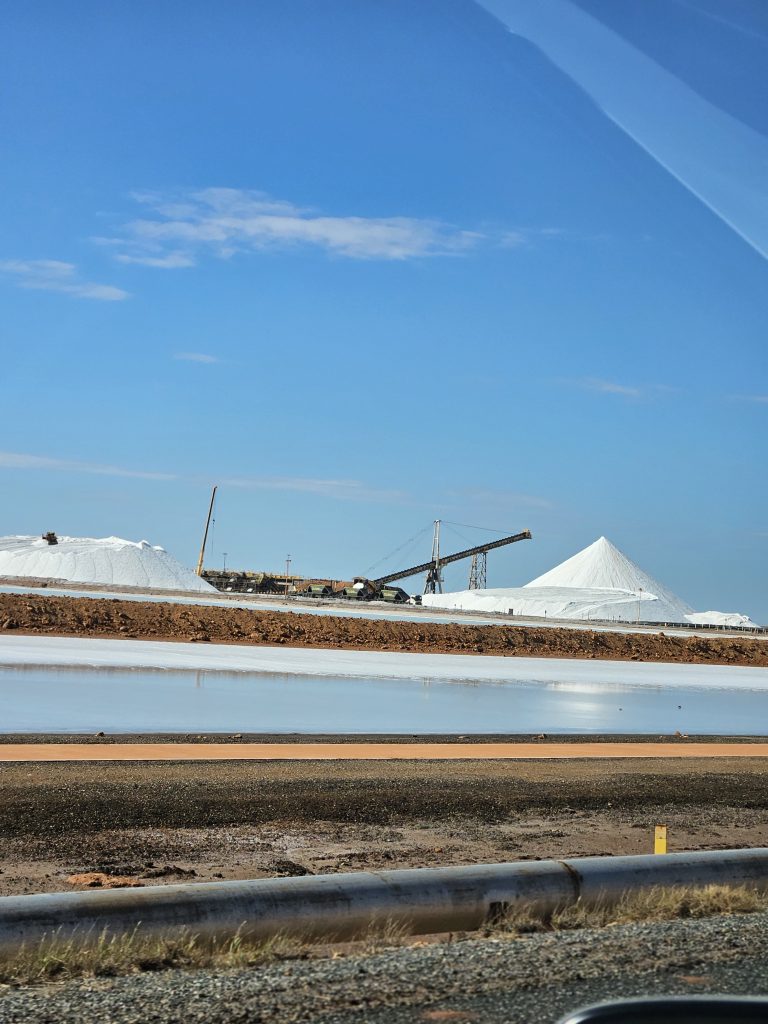 Hier leben 13800 Einwohner. Wir sind in einer der größten Städte von West Australien. Der Hafen Port Hedland ist ein beeindruckender Schüttguthafen. Von hier wird vor allem Eisenerz exportiert. Wir sehen aber auch riesige weiße Salzhaufen.