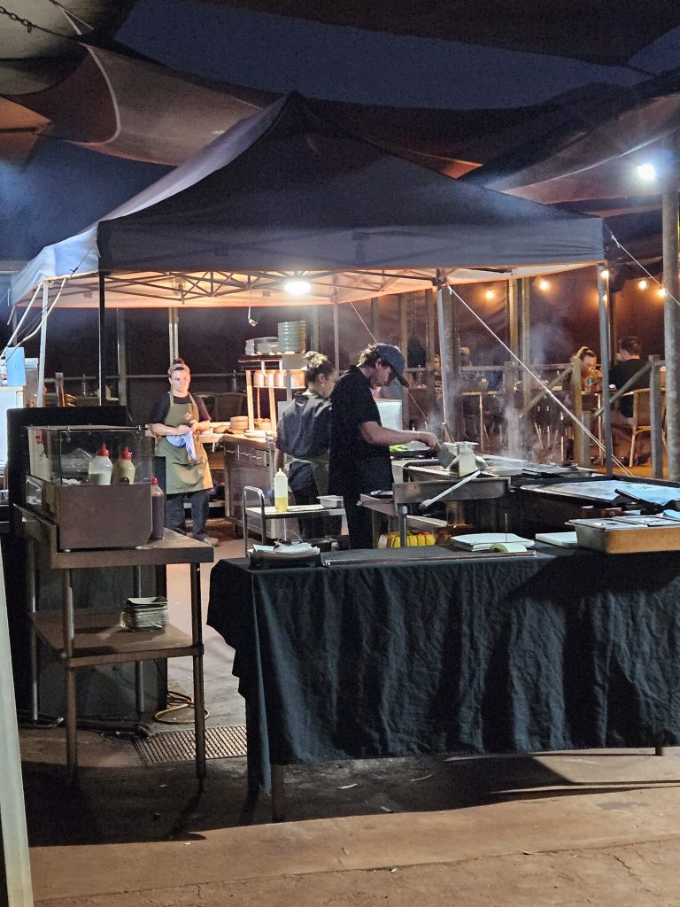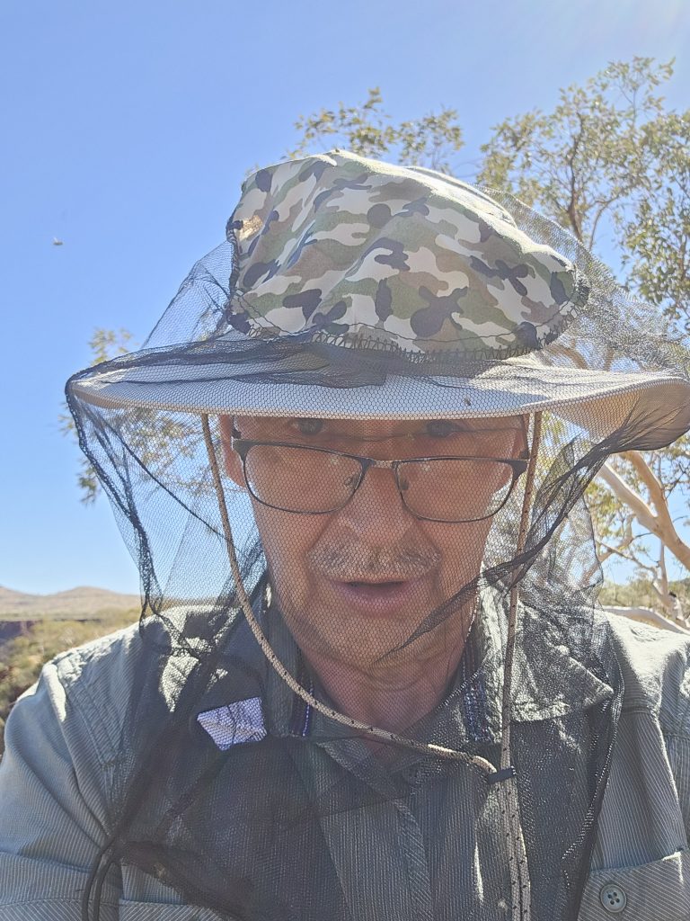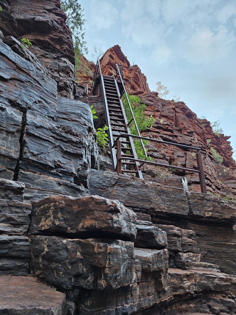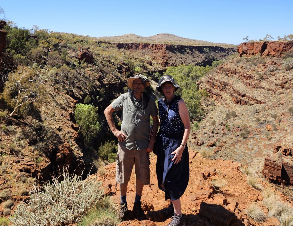 Ein ganz besonderes Zeltlager mit dem Namen Karijini Eco Retrat, DELUXE. Naja, es gibt eine Dusche und Licht. Am Tag sind es ca. 35 Grad, in der Nacht wird es dann angenehmer. Unsere Vorräte kommen in eine Kühlbox für die wir Eis kaufen müssen. Handy-Ladung erfolgt nur in der Gaststätte. Hier kann man frühstücken und essen, doch nicht so lecker, wie in vielen anderen Unterkünften. Auch ein Kaffee zwischendurch ist schwierig. Wir holen Wasser in einer Thermoskanne. Sehr heiß, viele Fliegen und einfach! Die Frau an der Rezeption betont, dass es „Snakes“ (Schlangen) gibt. Also wird darauf geachtet die Reißverschlüsse ordentlich zu schließen.