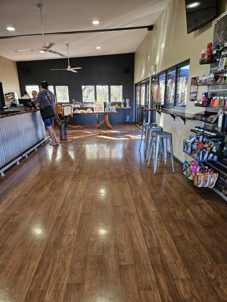 Wir finden den Bauernhof „Bullara Station“. An der Rezeption empfangen uns zwei nette Frauen. Ich fragte nach einem Zimmer, „ja“. Mein Gott endlich haben wir eine Unterkunft. Es ist geräumig und sauber mit einem Kühlschrank und Fernseher. Draußen gibt es Toiletten und Duschräume, saubere, helle Küchen und sehr viel Platz für Familien. Eine Art Saloon bietet Speisen und Getränke an. Uns gefällt es.