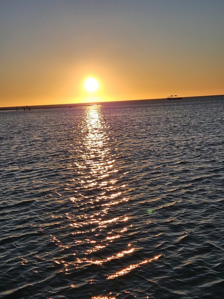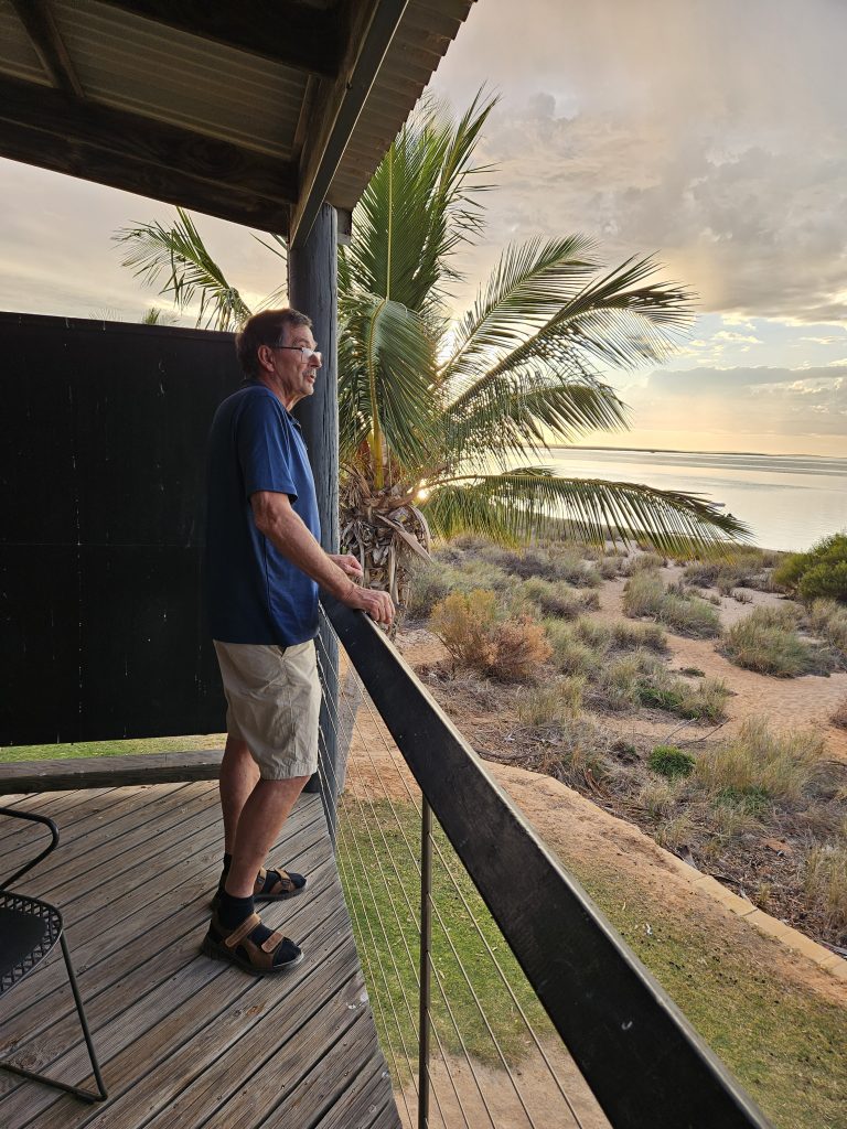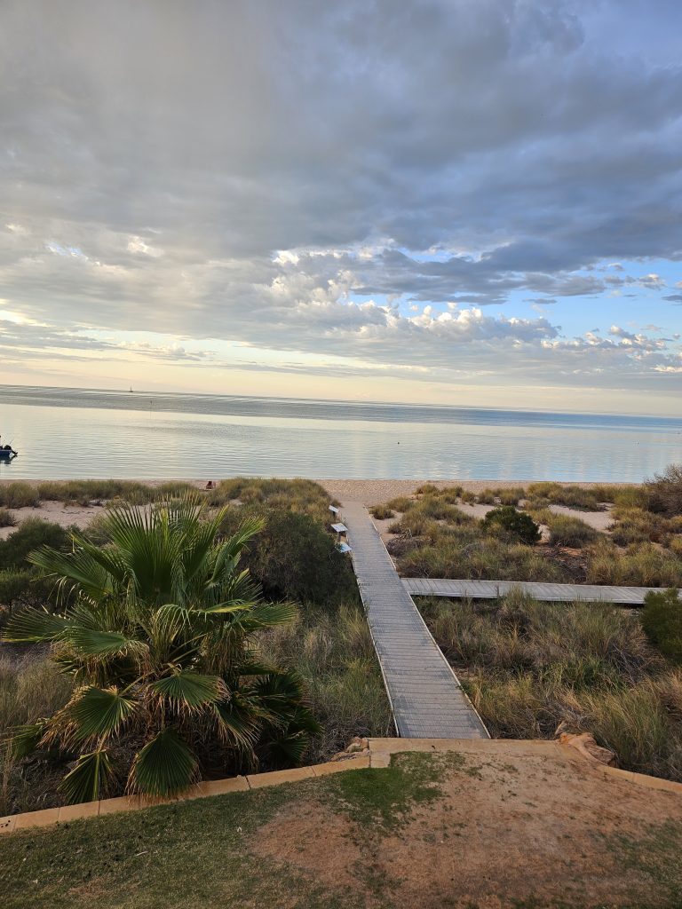 In Monkey Mia angekommen erleben wir so einen Blick von unserem Balkon. Ist das nicht traumhaft? Leider geht die Sonne 18.00 Uhr schon unter.