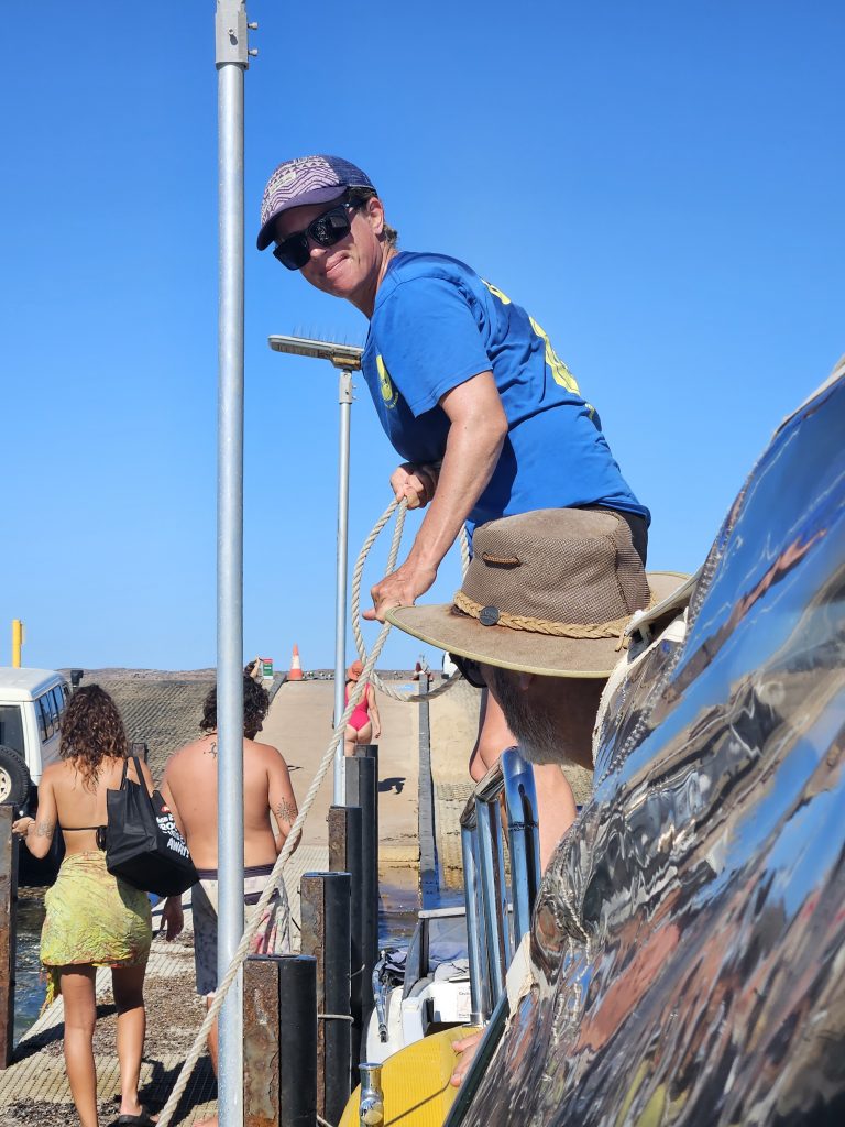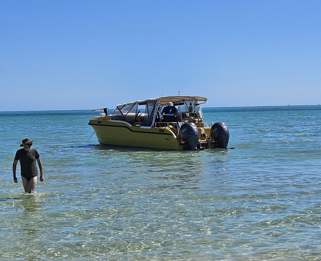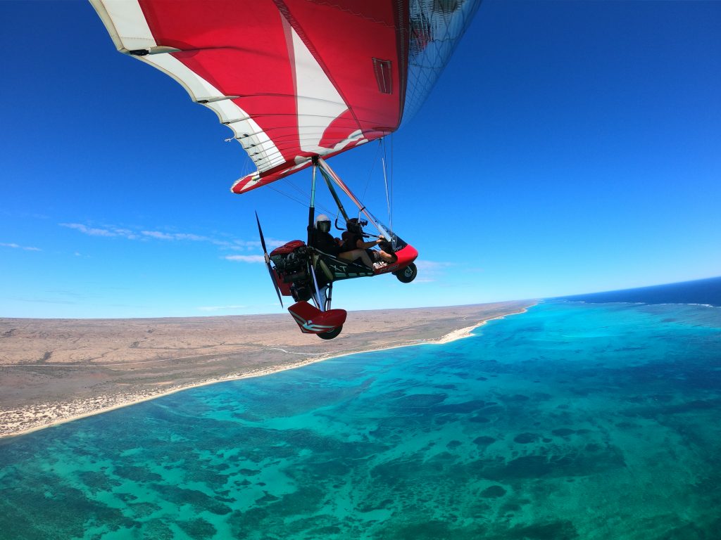 Schon von zuhause haben wir eine Schnorcheltour gebucht. Wir fahren von unserer Übernachtung nach Exmouth. Dort erspähen wir einen Anbieter für verschiedene Touren, zum Beispiel für das Fliegen mit Ultraleichtfliegern. „Du hattest deinen Helikopterflug, jetzt bin ich dran mit einem Ultraleichtfliegerflug“. Wir kommen mit der netten Frau ins Gespräch und buchen Flüge für uns beide als Tandemflieger. Dann frage ich, wo unsere Schnorcheltour beginnt und zeige meine Unterlagen. Sie sagt, da muss sie sich erst einmal erkundigen, wer das anbietet. Sie empfiehlt uns ein angesagtes „Whales Restaurant“ und wir essen Snapper mit Pommes und Snapper mit Salat. Anschließend fragen wir nach. Unsere Fahrt mit dem Boot beginnt 8.00 Uhr. Hier am Geschäft werden wir abgeholt und nicht an unserem Hotel. Oh, das heißt 1 1/2 Stunden von unserer Anlage los um pünktlich da zu sein. Auch die Ultraleichtflieger-Tour beginnt hier mit der Abholung. Na gut, wer das eine will…..