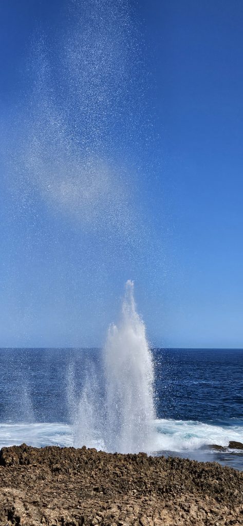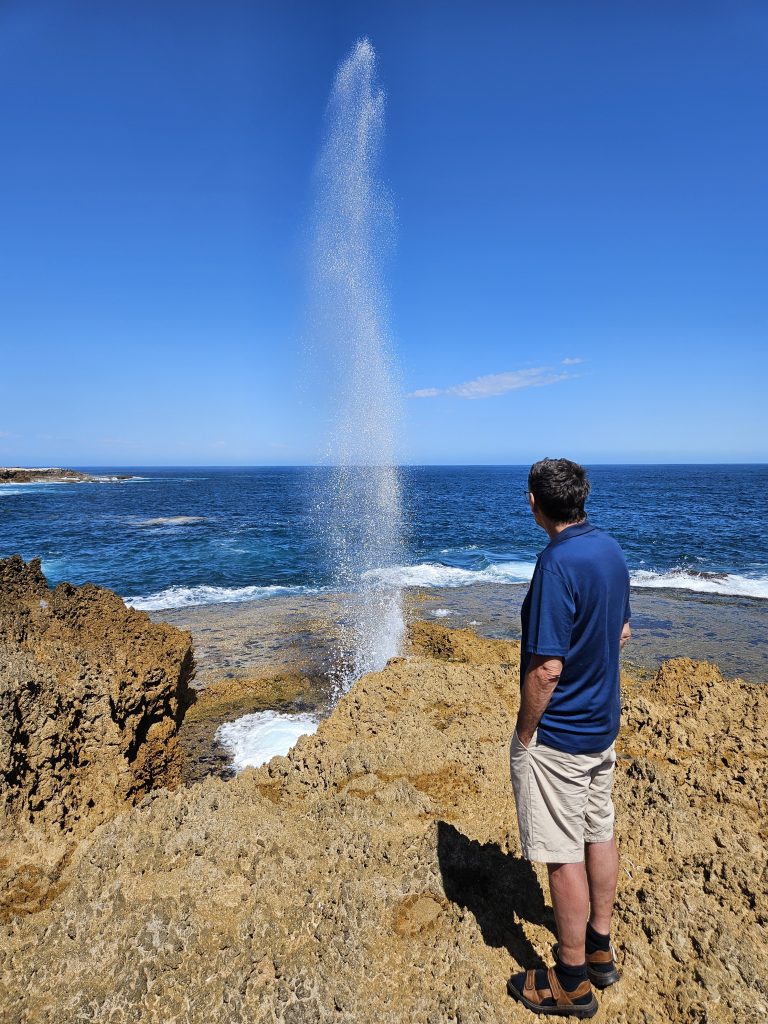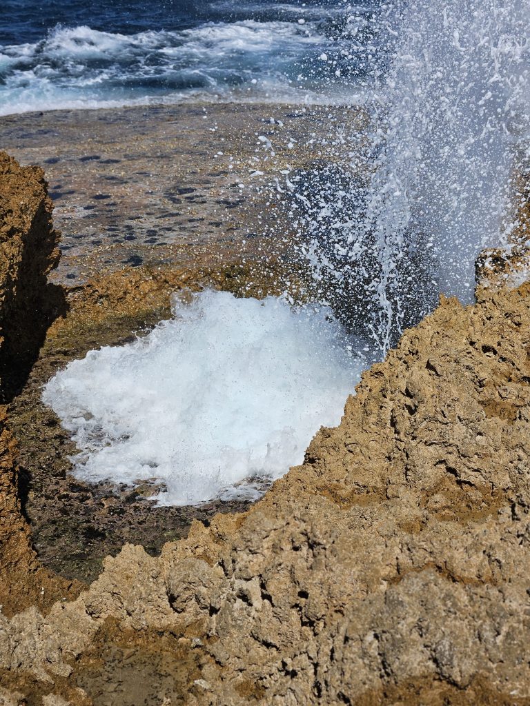 Auf dem Weg dahin werden wir auf ein kleines Schild aufmerksam, Quobba Blow Holes. Das müssen wir uns anschauen.