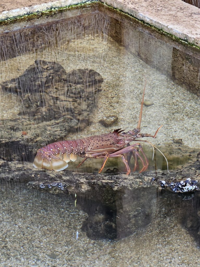 Ich bin überwältigt. Es ist angenehm warm und wir schauen auf das Meer. Mein Mann sucht eine Kochecke und Geschirr, leider nicht alles vorhanden. Doch einen Kaffee kann er sich wie immer kochen. Auf den nächsten Tag bin ich besonders gespannt. Hier kann man Delphine, die angefüttert werden, beobachten.