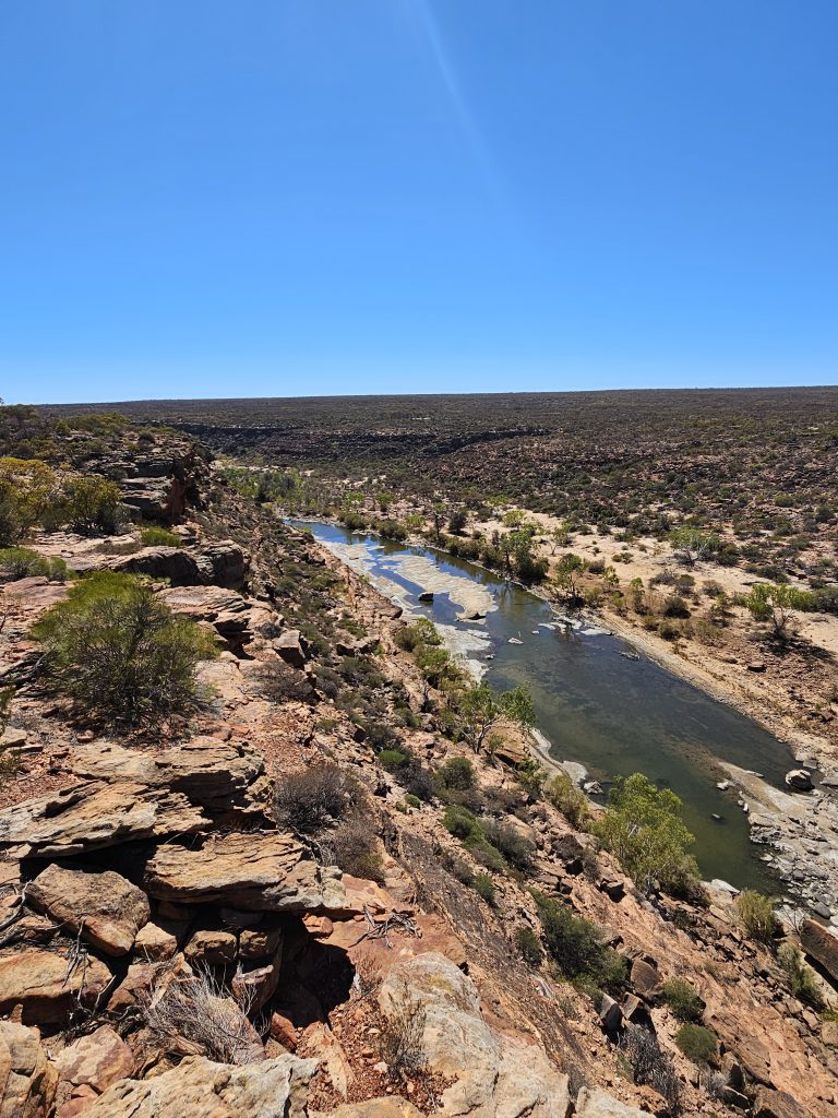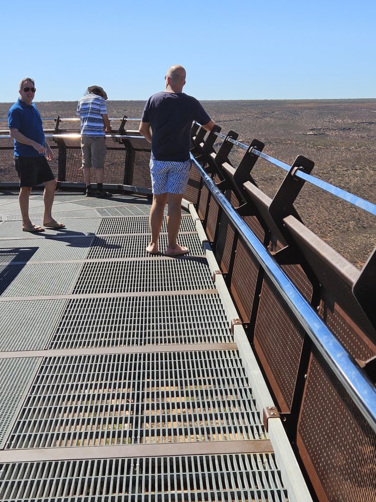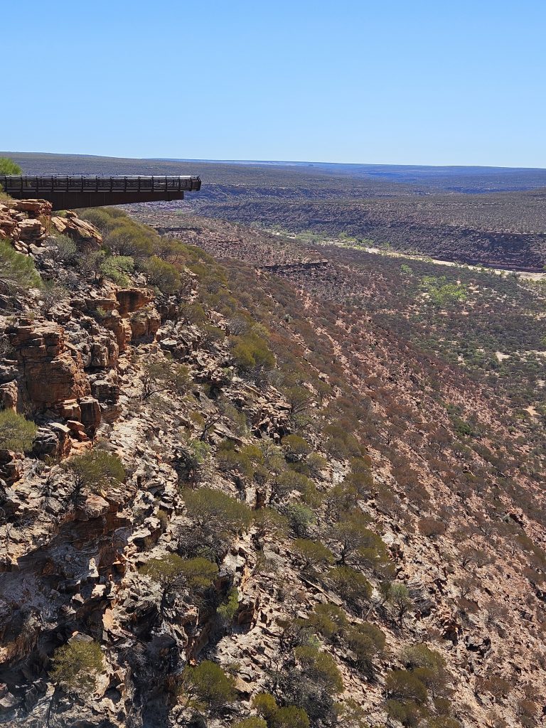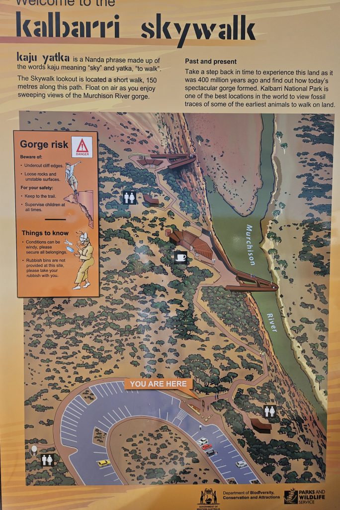 Auf dem Weg in unser nächstes Quartier finden wir ein Schild „Kalbarri Skywalk“. Ja, es steht auch auf unserer Liste und hört sich interessant an. Wir zahlen die Gebühr für den Nationalpark und sind gespannt.