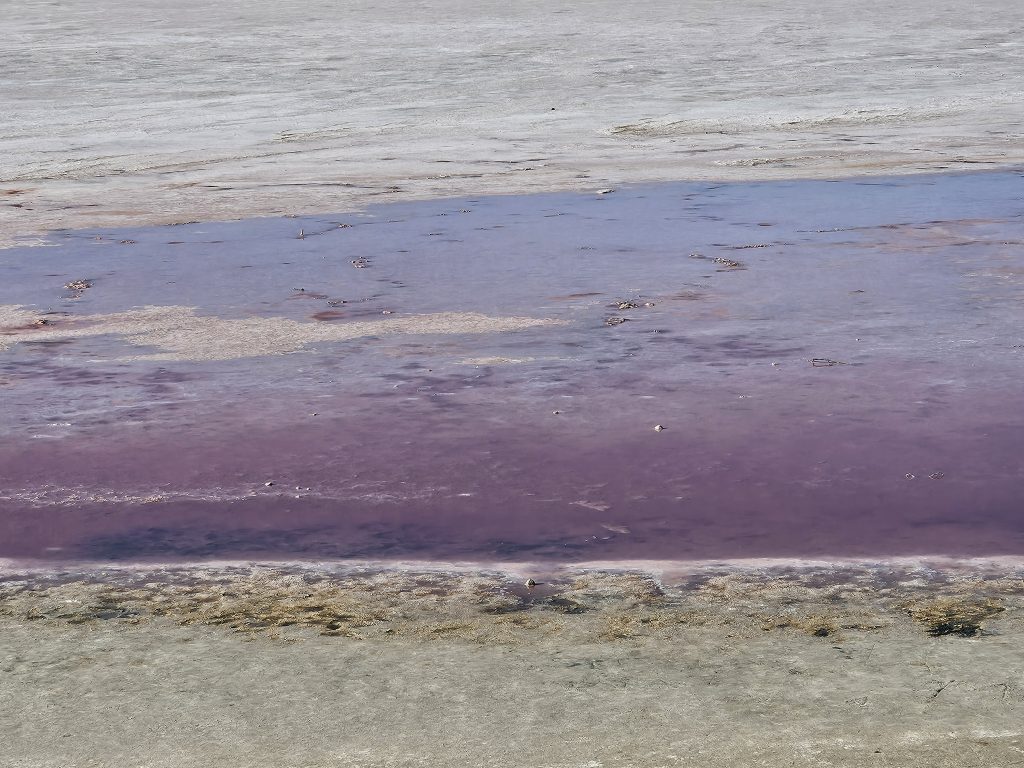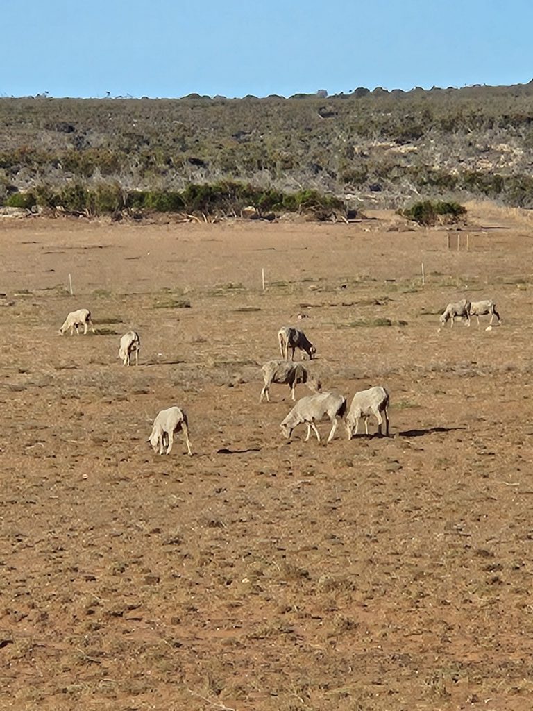Über Port Gregory fahren wir nach Kalbarri in das Palm Resort. Vorher haben wir einen Rest vom „Pink Lake“, (Pinken Fluss)“ angeschaut. Wir staunen über die Schafe, die hier noch Futter finden!