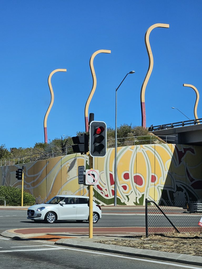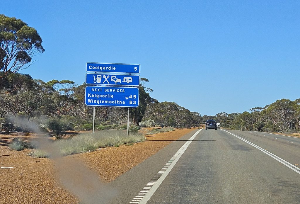 Nun geht es weiter in Richtung Kalgoorlie. An einer Tankstelle etwas Kunst. Wir sehen Rauch und ich hoffe nur, dass wir nicht direkt hindurch fahren müssen.