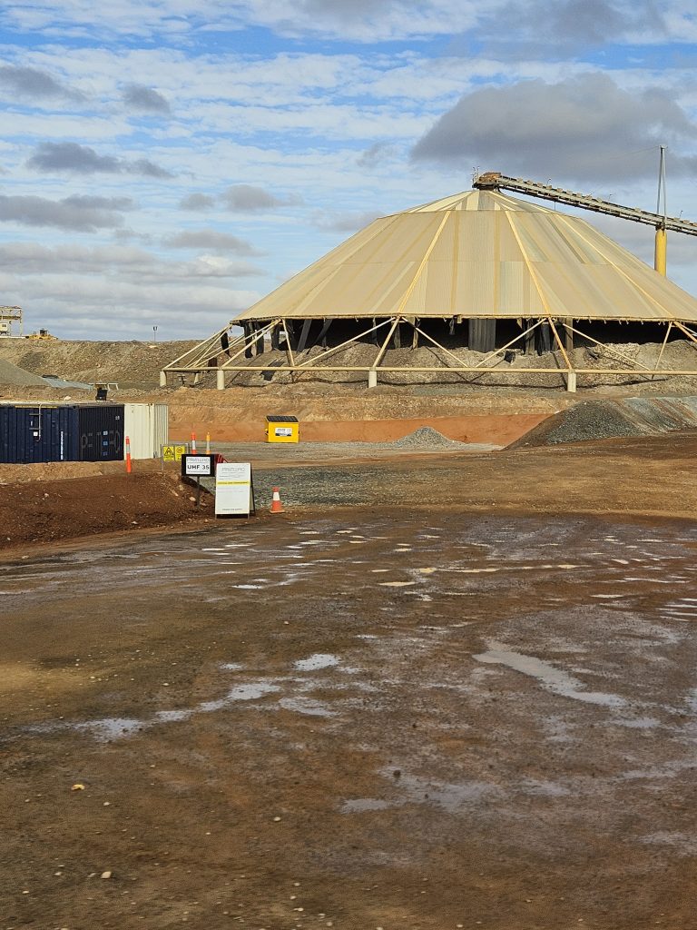 Mit einem Bus und natürlich Schutzkleidung geht es in das Areal der Goldmine. Die Fahrzeuge sind enorm groß, Räder in einer Höhe unseres Busses. Die Führung ist sehr interessant. Das Gold muss aus dem Gestein gesprengt werden. In einer Woche werden 9000 Unzen gefördert. Die Männer und Frauen (50%) arbeiten 7 Tage, je 12 Stunden und haben dann 7 Tage frei.