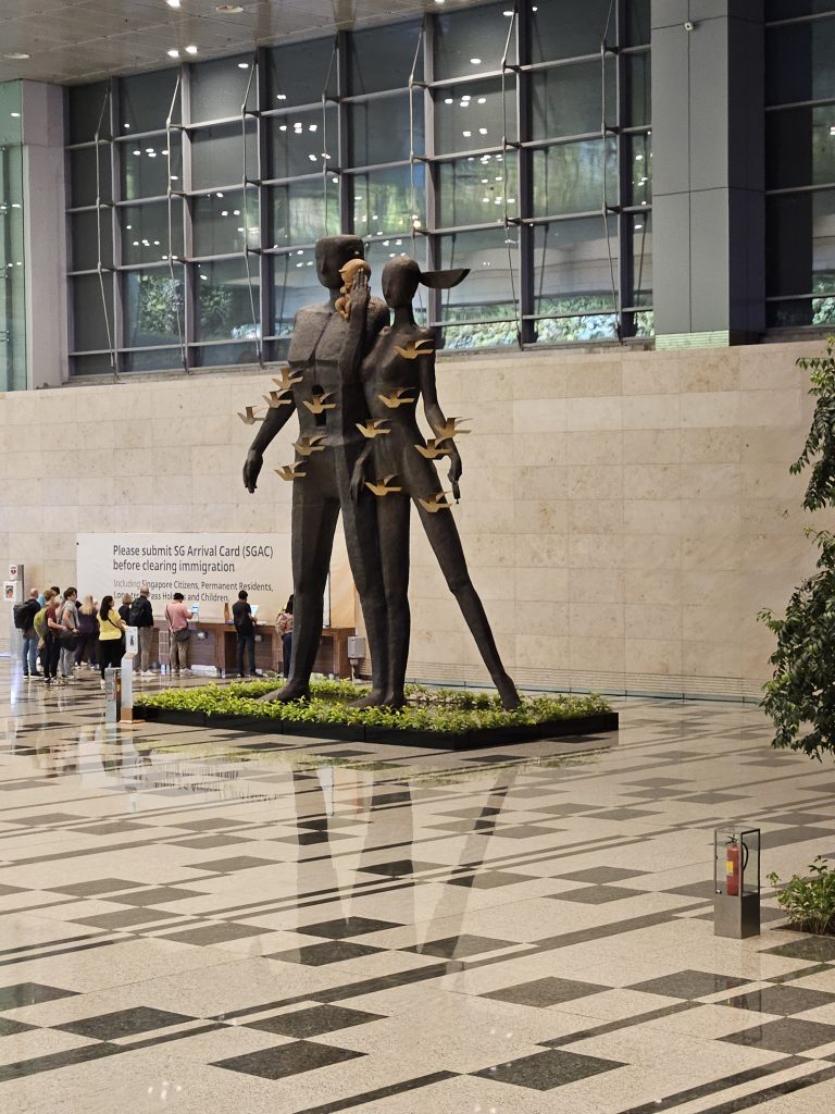 Auf dem Weg nach Australien machen wir einen Zwischenstopp in Singapur. Der Flughafen ist weitläufig mit interessanter Gestaltung. Singapore Flyer heißt das Riesenrad. Eine Runde dauert 30 Minuten.