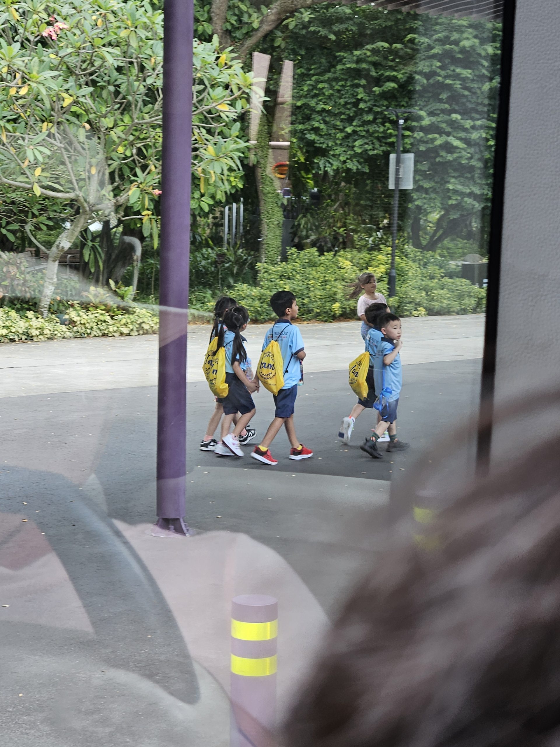 Na wer kommt denn da des Wegs? Mehrere Grundschulklassen mit Lehrern und Betreuern überholen uns. Die Kinder erzählen und lachen und machen uns neugierig. Wohin wollen sie? Da scheint die Straße doch zu Ende zu sein! Auf einmal geht es den Berg hoch in den Wald. Wir folgen und müssen uns anstrengen, sie nicht aus den Augen zu verlieren. Die Wege sind schmal und manchmal tückisch. Ich glaube nicht, dass wir unsere Kinder dort langschicken würden, viel zu viele Gefahren …!