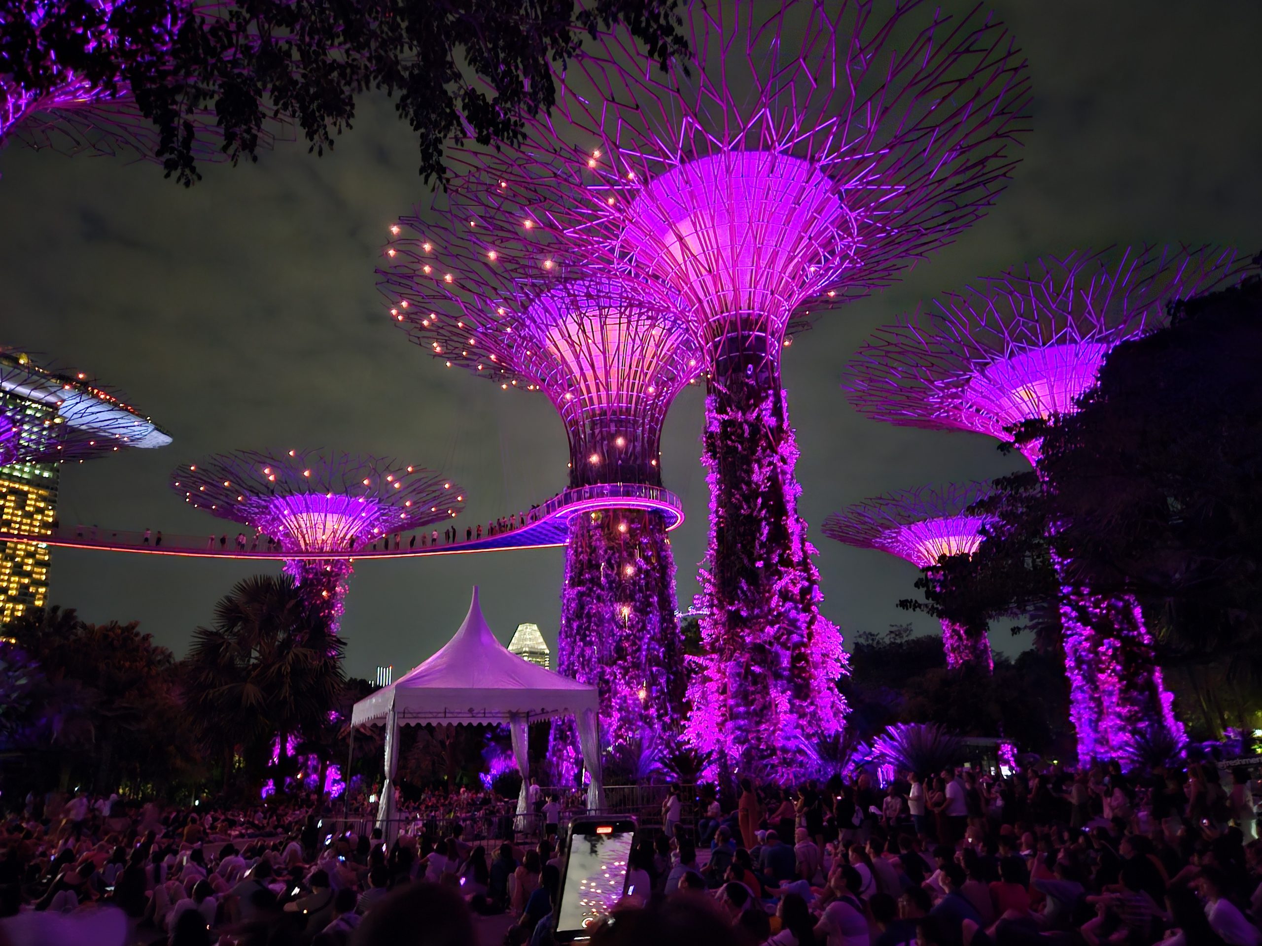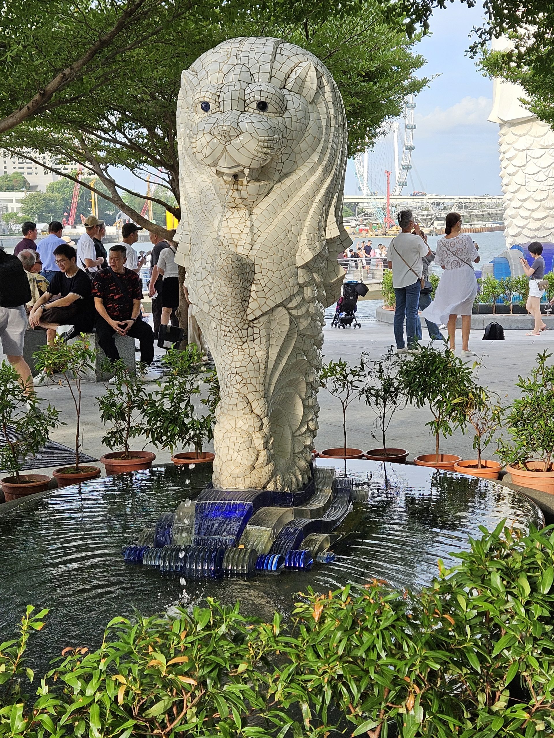 Es sind zwei unvergessliche Tage. Wir stehen ungefähr 20 Minuten an um auf das Dach des Hotels „Marina Bay Sands“ zu gelangen. Vom Observation Deck gibt es einen bombastischen Blick auf die Stadt, dem lotusblütenförmigen „Art Science Museum“, dem „Garden by the Bay“, dem „Singapore Flyer“ und vielem anderen. Zum Abschluss des zweiten Tages machen wir eine Tour mit Bus und Schiff. Wir stehen neben dem Merlion-Brunnen, dem Wahrzeichen der Stadt (Meerjungfrau +Löwe) ein zusammengefasstes Kunstwort für den Schutzpatron, ein Fabelwesen mit Löwenkopf, das Stärke und Furchtlosigkeit symbolisiert. Auf dem Singapore River sehen wir noch einmal das Riesenrad und den Abschluss bildet der Besuch eines kleinen Konzertes mit fantastischer Lichtshow im Garden by the Bay.