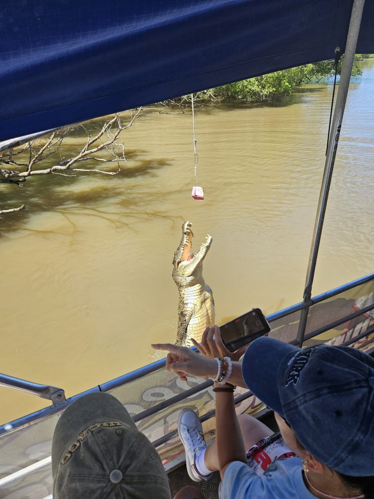 Ein Besuch im „Crokosaurus Cove“, wo wir Krokodilen beim Füttern zusehen und typische Tiere dieser Gegend kennenlernen ist sehr spannend. Auch den Kleinen wird anschaulich die Gefährlichkeit demonstriert.