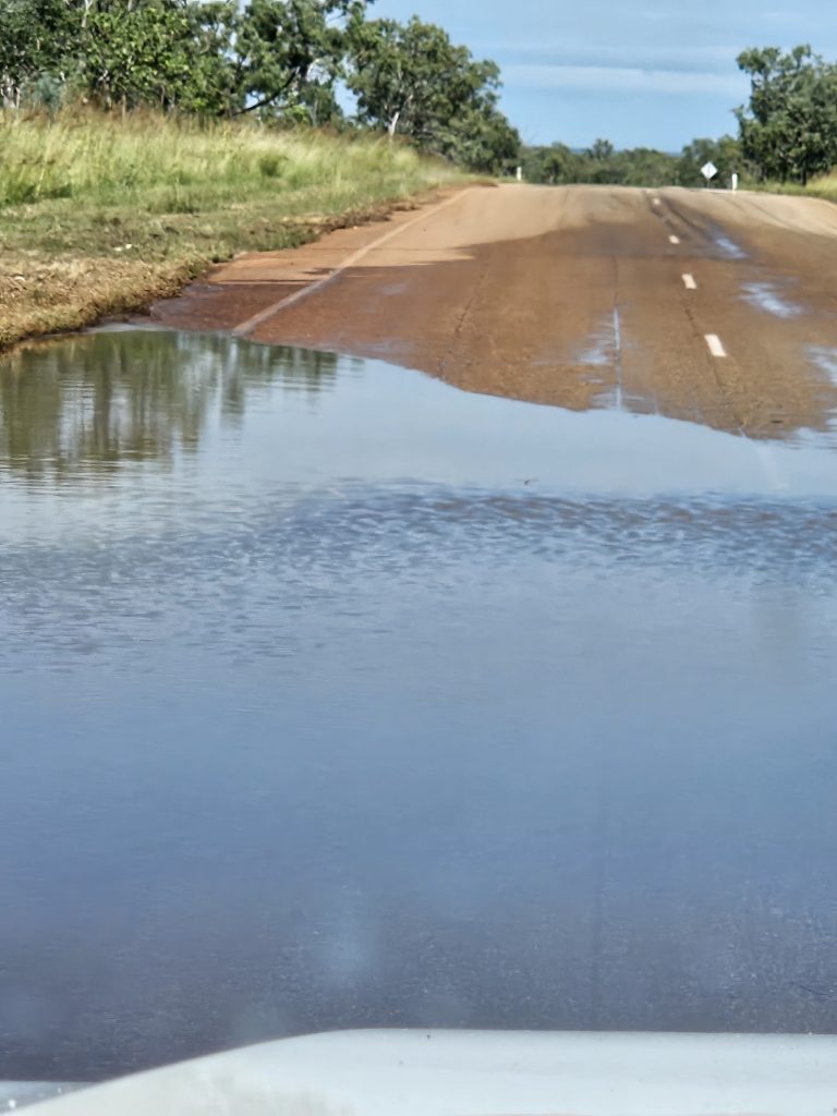 Auf dem Weg nach Kununurra sind noch einige Straßen überschwemmt.