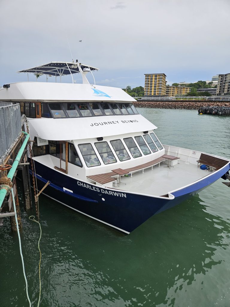 Unsere erste Stadt in Australien ist Darwin. Sie ist Hauptstadt des Nordterritoriums und das Tor zu Südostasien. Eine entspannte hochentwickelte Stadt mit Charme und 122.000,00 Einwohnern. Am 09.09.1839 landeten zwei Vermesser mit ihrem Schiff „HMS Beagle“ in der Bucht und der Kapitän des britischen Schiffes nannte den Ankerplatz „Port Darwin“. 1869 bekam Darwin das Stadtrecht. Es herrscht ein Tropisches Savannenklima mit der Regenzeit (November bis April: 24 – 32°Celsius und einer Luftfeuchtigkeit von 80%) und der Trockenzeit (Mai bis Oktober: 22 – 32°Celsius und einer Luftfeuchtigkeit von 50% und oft ohne Niederschlag).